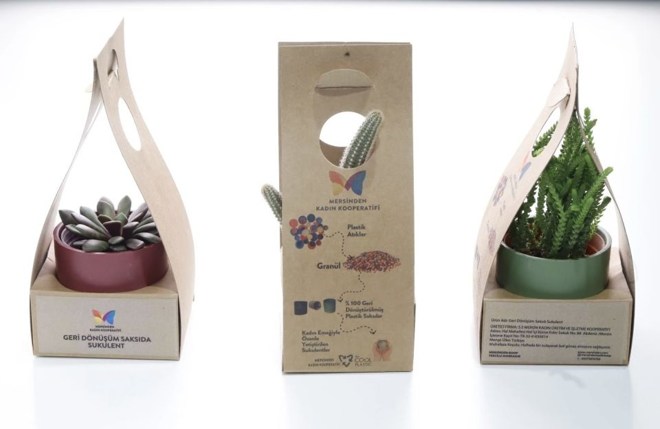 Mersinden Kadın Koperatifinin değerli çabaları ile geri dönüşümlü saksılar içinde artık çok daha değerli ve anlamlı bir hediye. Hediyelik Sukulentler, kadınlar günü başta olmak üzere, şirket yıl dönümü ve ofis partilerinin en aranılan hediyeleri.